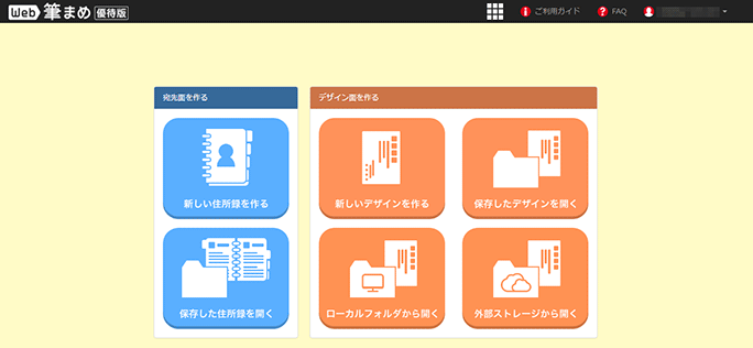 「Web筆まめ」はブラウザからアクセスして、Web上で利用できる。年賀状作成ソフト『筆まめ』とほぼ同じ機能が、さらに手軽に使える。