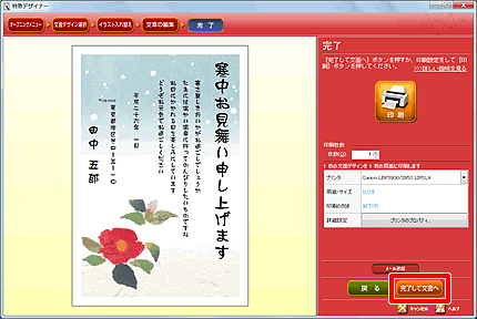 細かく編集したい場合は、[完了して文面へ]をクリックし、文面ウィンドウで行ってください。
