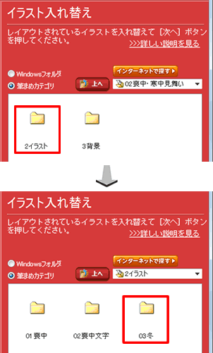 3.[イラスト]-[冬]の順にフォルダをクリックします。