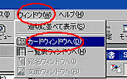 [ ウィンドウ ] メニュー - [ カードウィンドウへ ] をクリックします。 既にカードウィンドウが手前に表示されていると、[ カードウィンドウへ ] はグレーになり、選択できません。
