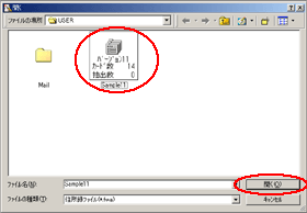 3. [開く]ダイアログボックスが表示されますので、修正したい住所録ファイルをクリックして選択し、[開く]ボタンをクリックします。