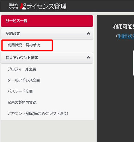 画面左のメニューから[利用状況・契約手続]を選択します。