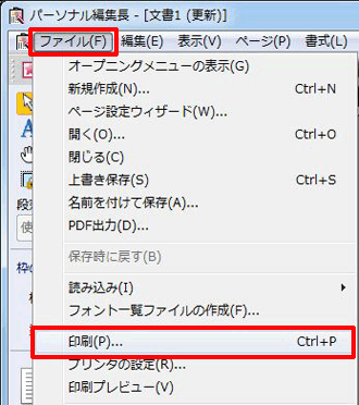 当該ファイルを開き、メニューバー「ファイル」-「印刷」をクリックします。